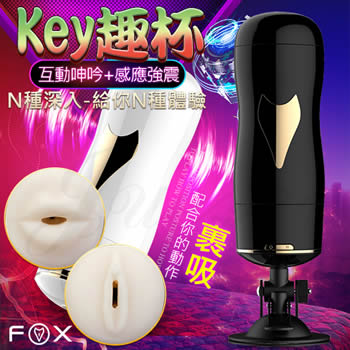 英國FOX-Key趣杯 互動呻吟魂嬌喘聲震動自慰杯(陰唇+口交)-黑