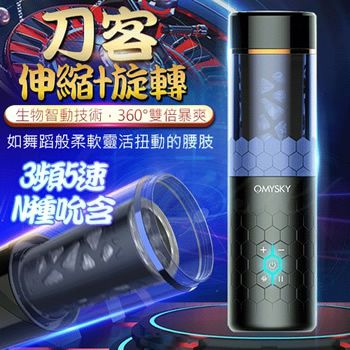 omysky-刀客 5段變速+3段變頻 伸縮旋轉吸盤自慰杯-黑色