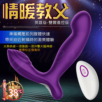 情暖教父 智能恆溫 10段變頻雙震前列腺按摩棒-英雄版搖控款(黑/紫)