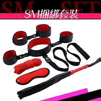 SM 激情調教皮革五件套(眼罩+鞭子+口塞+手腕銬+丁字褲)